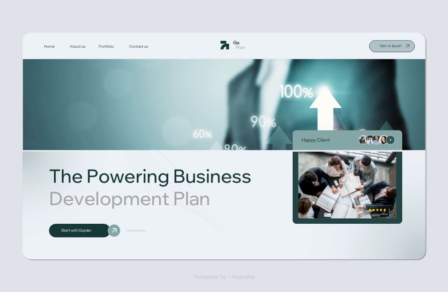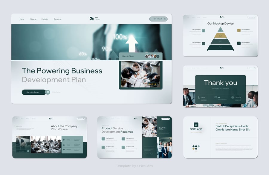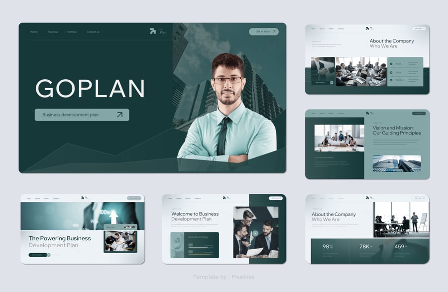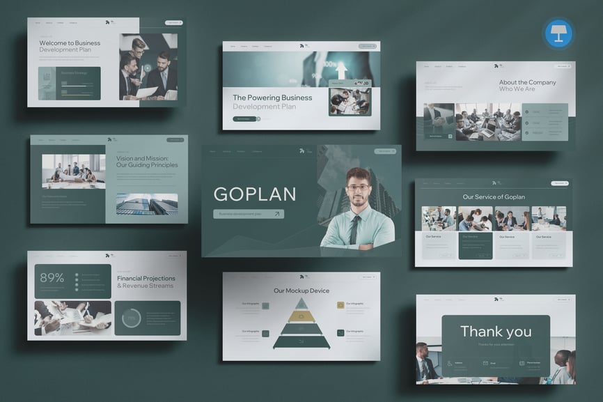 Goplan – 业务发展计划演示模板,每张幻灯片都独一无二,绝非重复的布局。只需使用 Keynote,即可为您的品牌创建精美的宣传演示文稿,非常适合用于数字媒体工具包、营销工具包或演示文稿。