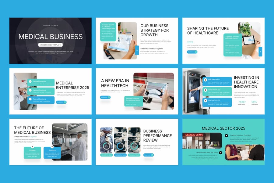 使用医疗业务 PowerPoint 演示文稿模板提升您的医疗保健演示文稿效果。这是一款专为医疗保健行业设计的现代、专业且完全可编辑的幻灯片。该模板非常适合医院、诊所、制药公司、医疗初创公司和医疗专业人士,可帮助您清晰有效地传达复杂信息。凭借独特的幻灯片、富有创意的信息图表、医疗图标、图表和简洁的布局,您可以自信地展示医疗保健数据、研究报告、治疗计划或商业策略。每个元素均可自定义,以匹配您的品牌形象——无论您是向投资者提供演示文稿、展示医疗服务,还是向利益相关者展示医疗保健解决方案。