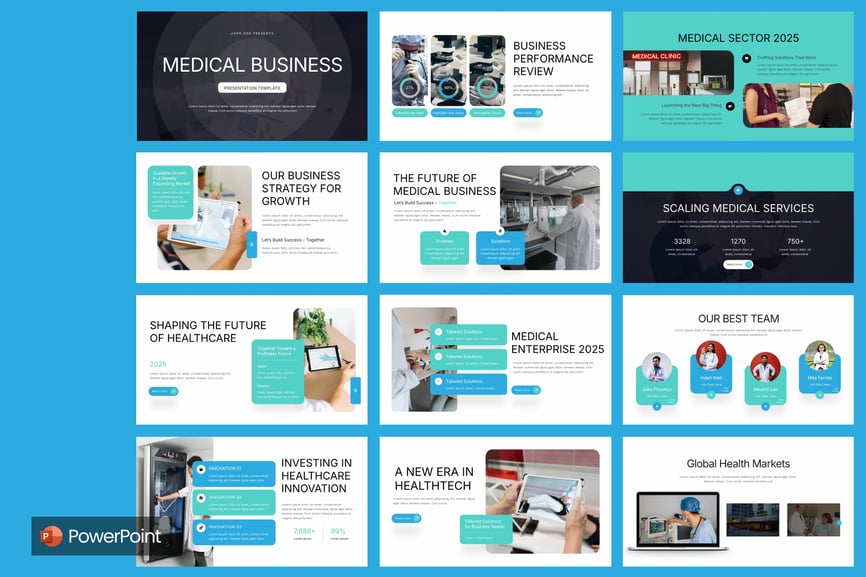 **医疗业务 PowerPoint 模板 – 专业医疗保健演示幻灯片。**