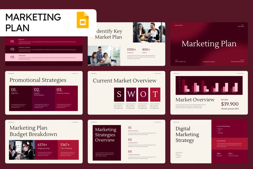 它包含专业设计的幻灯片,具有现代布局、视觉冲击力强的图形和可编辑图表,增强了叙事和数据可视化的效果。该模板可完全定制,适合任何行业,助您打造出吸引眼球、推动成果的成功方案。适用于谷歌营销计划幻灯片、营销策略演示文稿、商业营销幻灯片、数字营销计划模板、谷歌活动计划幻灯片、营销提案幻灯片、广告演示文稿模板、谷歌营销漏斗幻灯片、SWOT分析营销计划、竞争对手分析幻灯片、产品发布营销计划