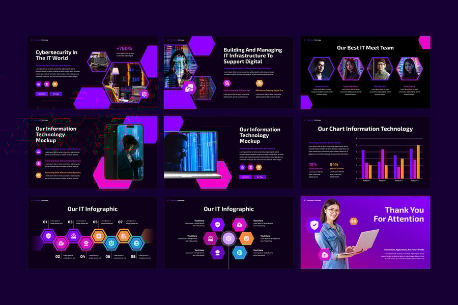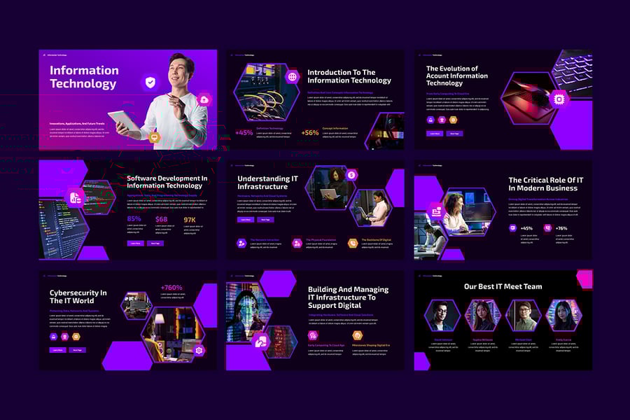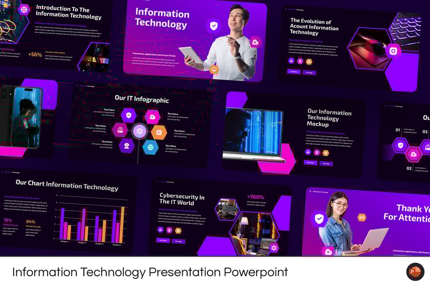 **信息技术 IT PowerPoint 演示文稿** 采用创意主题。此模板还为您的演示需求提供便利,提供各种主题和用途,以及更改文本、图像和颜色的功能。