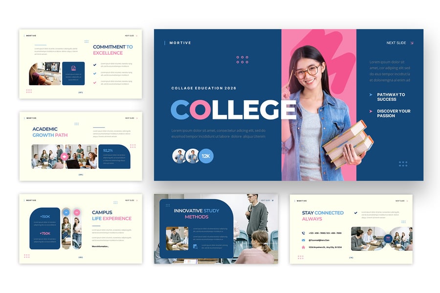 所有幻灯片均可完全自定义,您可以调整颜色、排版、图片和信息图表,以匹配您机构的品牌形象。这款演示文稿非常适合大学、学院和教育顾问,有助于有效地向学生、家长或利益相关者传达关键信息。