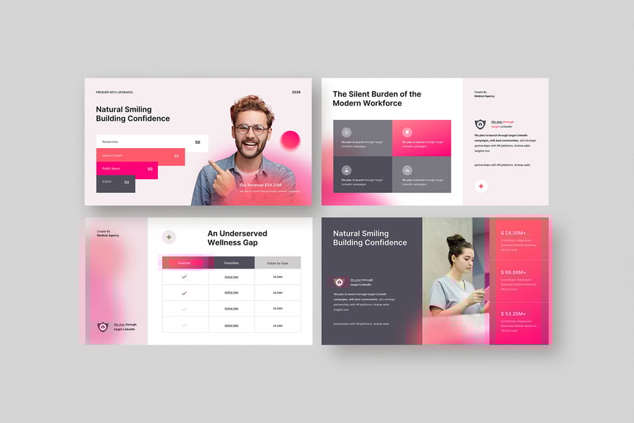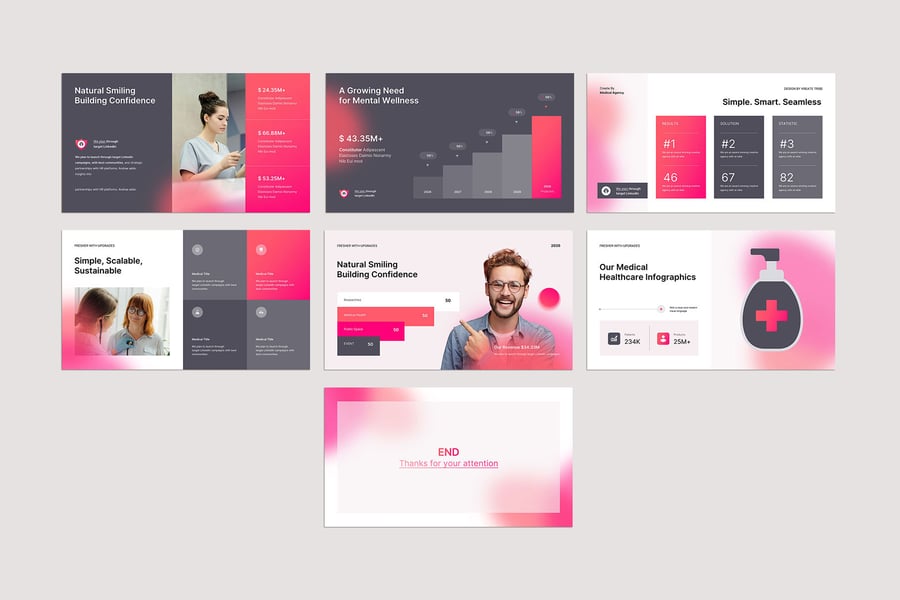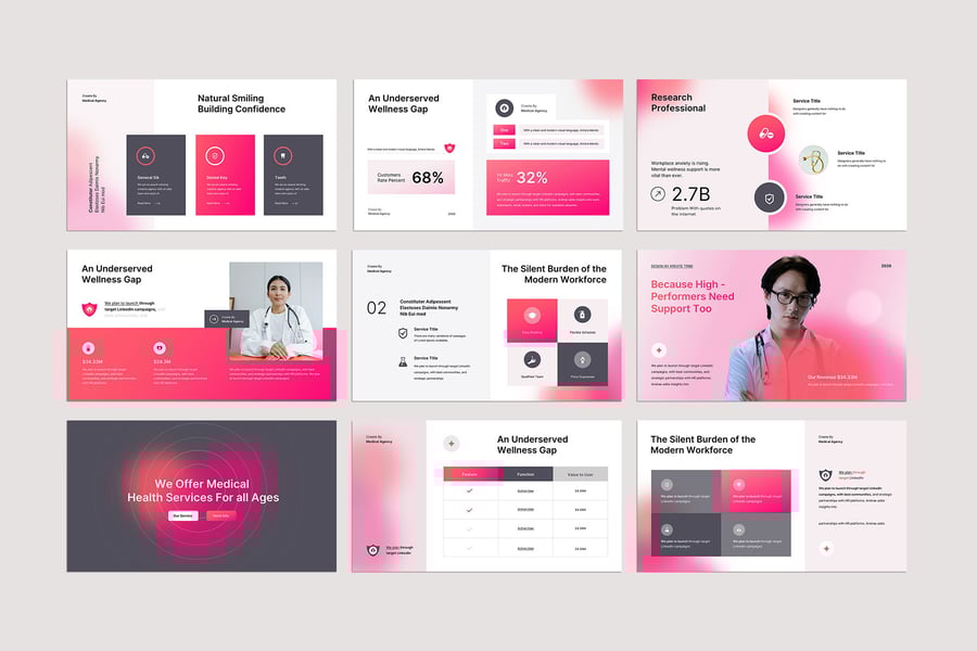 我们提供医疗健康领域演示的最佳模板,简约、优雅且专业,让您的演示更吸引
