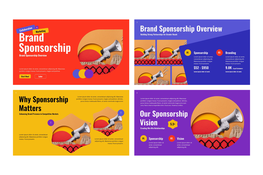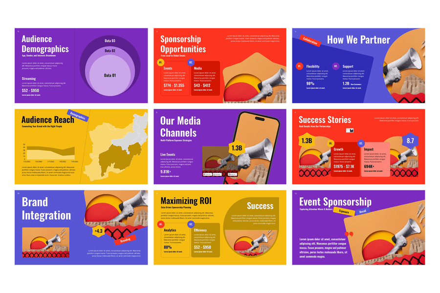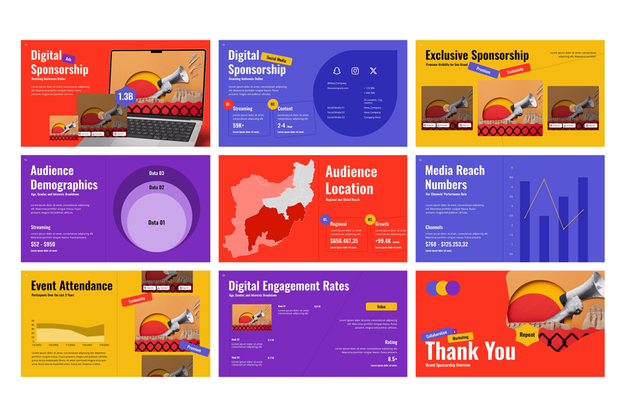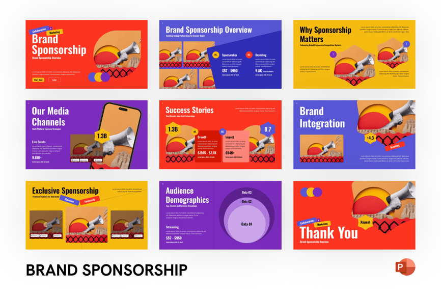 品牌赞助 PowerPoint 演示文稿模板是一款现代而专业的幻灯片,旨在帮助您轻松展示赞助机会、合作方案和品牌合作策略。这款模板非常适合营销团队、活动组织者、意见领袖和代理机构,其简洁的企业外观能够给潜在赞助商和利益相关者留下深刻印象。凭借完全可编辑的幻灯片、矢量图形和拖放式图像占位符,您可以自定义每个元素以匹配您的品牌形象。无论您是为活动、运动队、媒体宣传活动还是企业项目向赞助商推介,这款 PowerPoint 赞助模板都能确保您的演示文稿具有视觉吸引力和说服力。