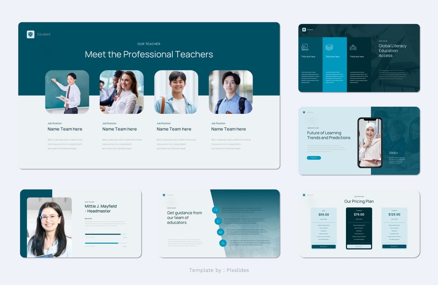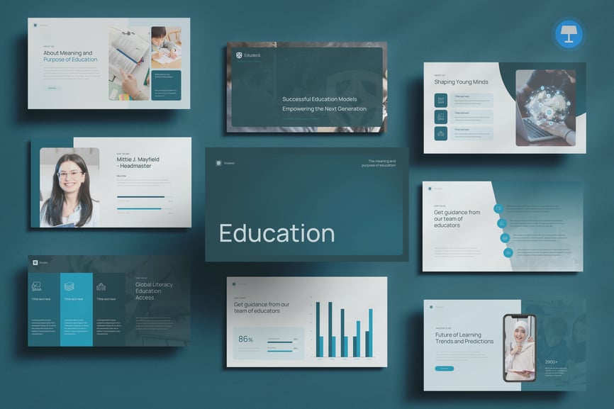 Edudeck – 教育演示模板,每张幻灯片都独一无二,绝非重复的布局。只需使用 Keynote,即可为您的品牌创建精美的宣传演示文稿,非常适合用于数字媒体工具包、营销工具包或演示文稿。