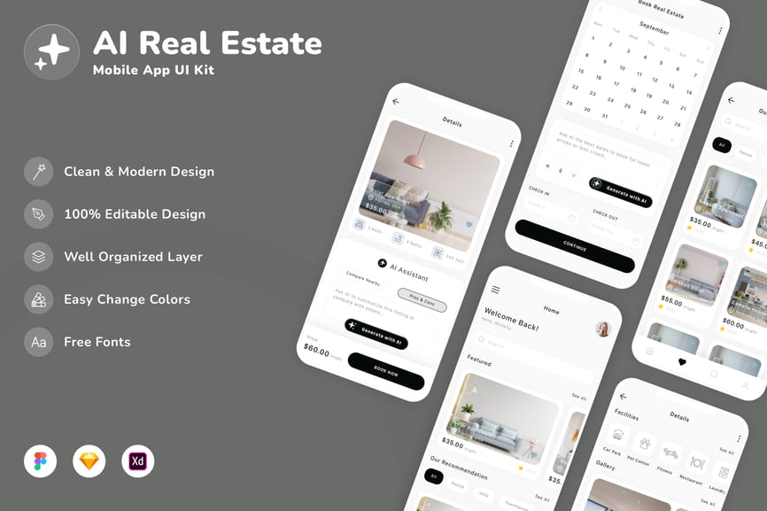 AI房地产移动应用UI套件