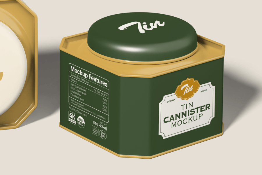 这款**锡罐模型**非常适合以逼真且专业的方式展示包装设计。它包含两个独立的场景,让您可以完全自定义方形锡罐的每个部分,从罐身、盖子到标签细节。智能对象图层使编辑变得简单,确保您的设计以高质量的渲染效果无缝地包裹在罐体周围。