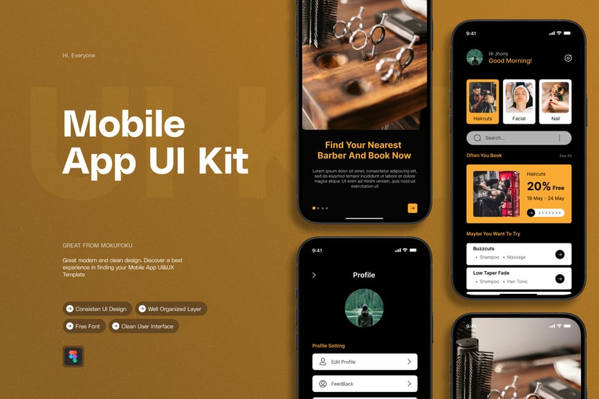 简洁现代的**Barber Roll**模板现已推出。它设计时尚,以文本为主。使用这些模板,您可以轻松构建自己的UI套件。