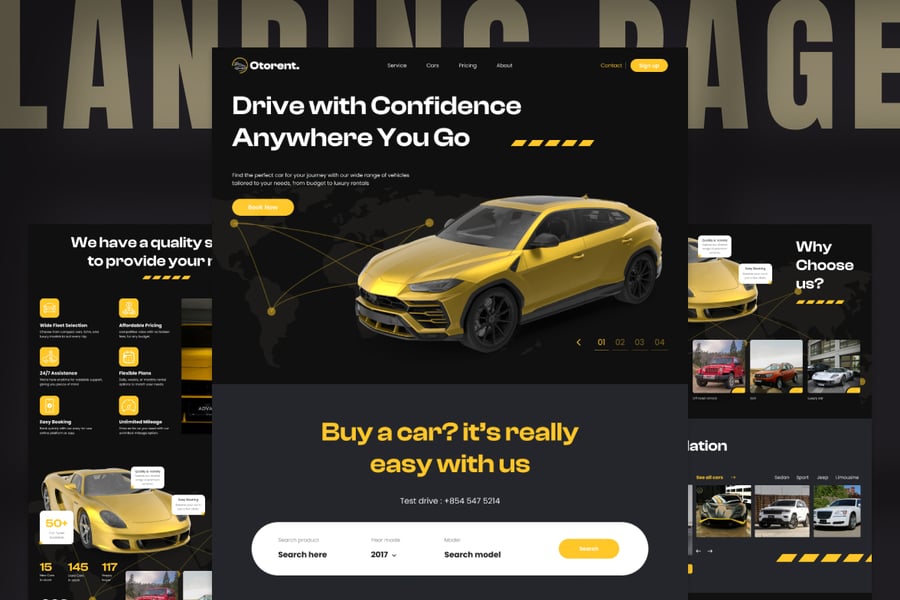 Otorent – 汽车经销商登陆页面是一款现代化的 UI 模板。我们的模板完全可定制,您可以根据项目需求,添加自己的品牌内容、字体和颜色。
