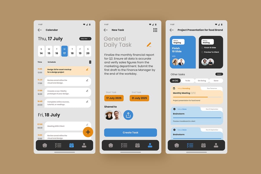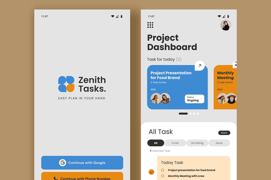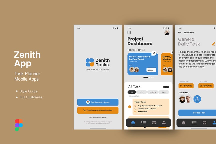 **Zenith** 是一款用于数字日常计划管理项目的任务规划器移动应用程序,由于其矢量形状和组织良好的图层,易于编辑、自定义和调整大小。