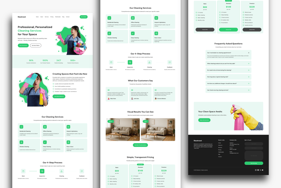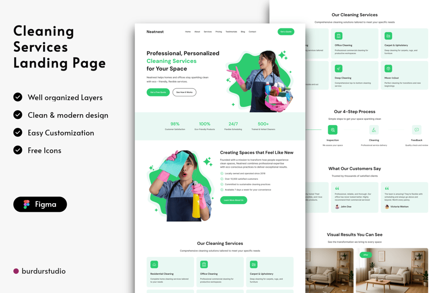 **此模板是一个简洁却专业、现代的网站。**您可以在 Figma 中编辑它。轻松插入内容、更改颜色,所有模板均已包含,可随时与您的受众分享。完全兼容、可编辑且像素完美。此外,它们组织有序,命名和分组都经过精心设计。