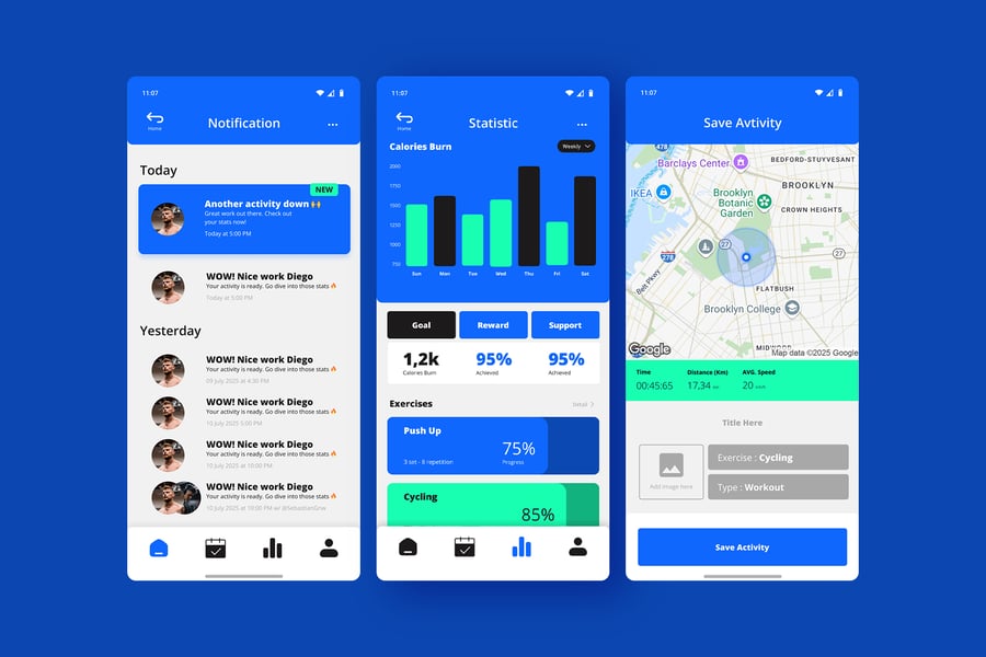 **Pulse** 是一款社交健身移动应用程序,适用于数字个人锻炼项目,由于其矢量形状和组织良好的图层,因此易于编辑、自定义和调整大小。