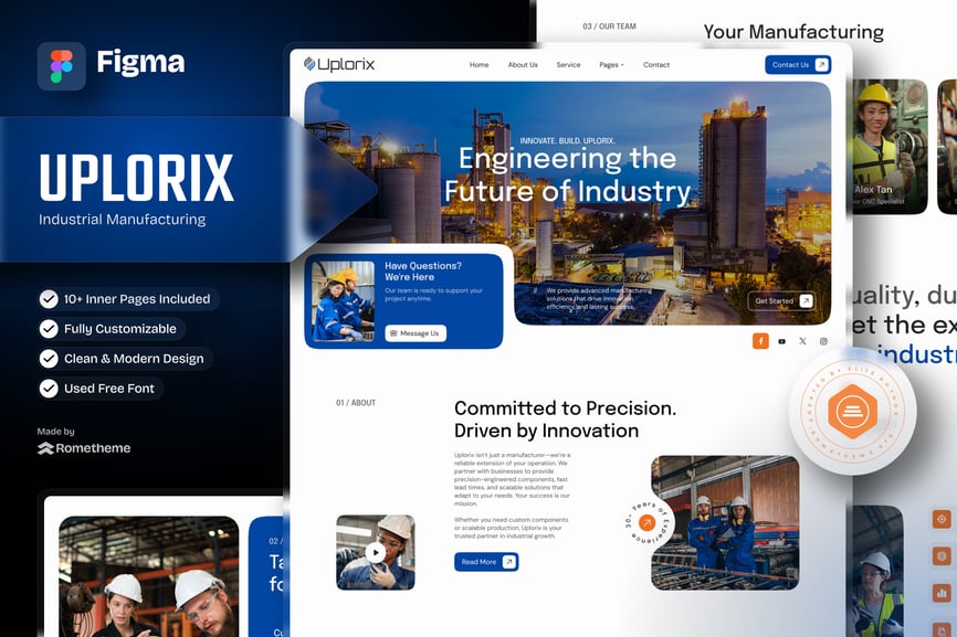 Uplorix 是一款专业设计的 Figma 模板,专为工业制造网站量身定制。无论您是要构建制造能力、工业产品、工程服务还是大规模生产解决方案的网站,Uplorix 都能提供现代、简洁且完全可定制的模板,帮助您打造具有影响力的在线形象。其用户友好的设计确保开发人员和设计师都能轻松流畅地完成设计。
