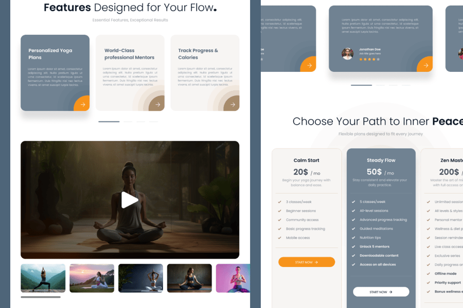 Yogaz 是一款精美的瑜伽登陆页面模板,非常适合健康应用、瑜伽工作室或私人教练。它拥有响应式设计、流畅的布局以及功能、价格、用户评价等高转化率的板块,能够提升您的品牌形象,吸引有心的用户。