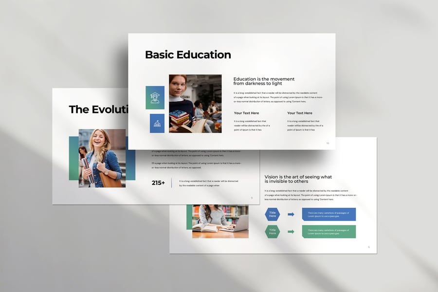 使用 NextGen Educate 演示模板,以专业简洁的方式展示您的作品。这款模板设计简洁现代,功能强大,包含创意照片布局、信息图表、表格、矢量图标、图表以及大量实用功能,可将您的作品和公司形象提升到一个新的高度。