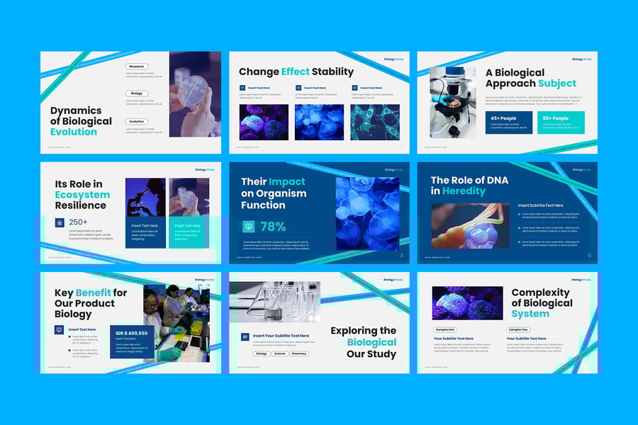 生物学研究 Google 幻灯片演示模板是一款现代、简洁且完全可编辑的演示文稿,专为学生、教师、研究人员和教育专业人士设计。该模板非常适合展示细胞结构、生态系统、遗传学、解剖学、进化等生物学主题。该模板包含 20 多张独特的幻灯片、矢量插画、可编辑的信息图表、数据图表和科学图标,可帮助您清晰、富有创意地解释复杂的生物学概念。非常适合在线课程、科学项目、学术会议和 YouTube 教育视频。