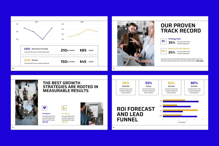 使用此模板打造引人入胜的宣传方案,其中包含专业设计的幻灯片,可展示您业务的各个关键方面,从公司概况和价值主张到财务状况和团队简介。其现代化的布局、可视化的图形和可编辑的图表,让您轻松讲述故事并有效地可视化数据。该模板可完全自定义,适用于任何行业,让您能够打造引人入胜、卓有成效的宣传方案。适用于 – 标记聊天 GPT –
