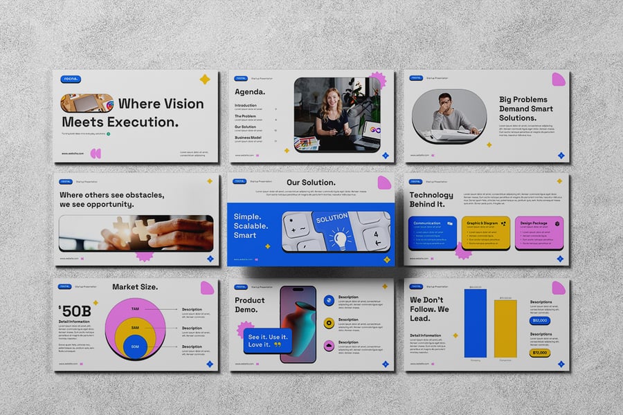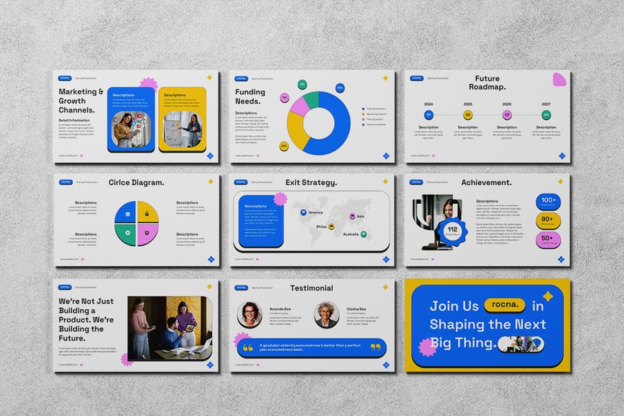 初创企业 Google 幻灯片模板专为希望自信地讲述商业故事的创始人、企业家和团队而设计。该模板采用大胆的布局、可编辑的图表和现代视觉效果,可帮助您以吸引投资者和合作伙伴的方式展示您的价值主张、产品、市场潜力、发展势头、财务状况和团队。该模板可在 Google 幻灯片中完全自定义,还支持实时协作,非常适合用于融资演讲、投资者会议、加速器项目或内部战略会议。使用此模板,您的初创企业演示文稿不仅能提供信息,还能激发灵感。