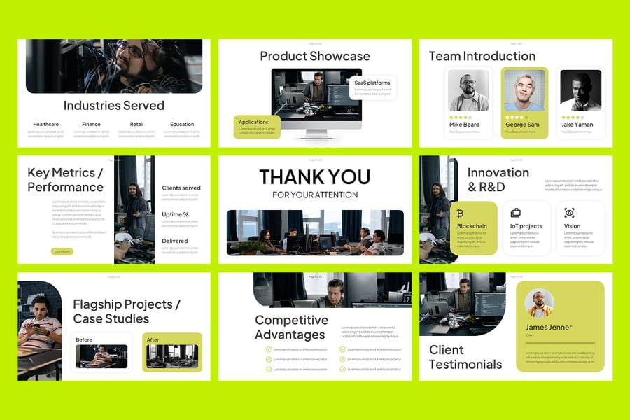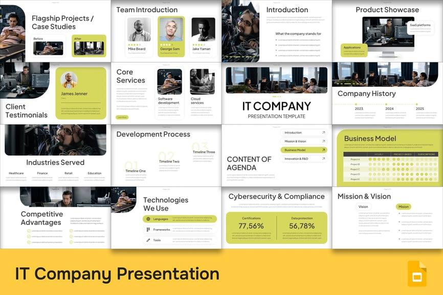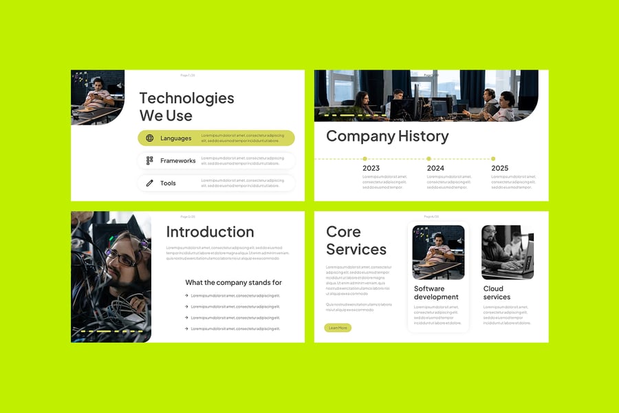 **推荐用于:**技术演示、软件推介演示文稿、SaaS 演示、技术初创公司、IT 服务、IT 提案、技术业务、软件公司简介、技术公司演示文稿、IT 解决方案、数字代理演示、初创公司技术推介、IT 产品组合、软件开发演示、云计算、IT 咨询、技术战略、产品发布演示、IT 商业计划