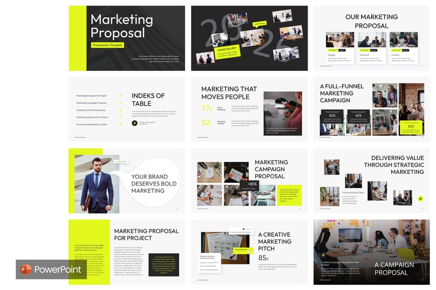 **简洁专业的 PowerPoint 营销提案模板 | 战略幻灯片。**