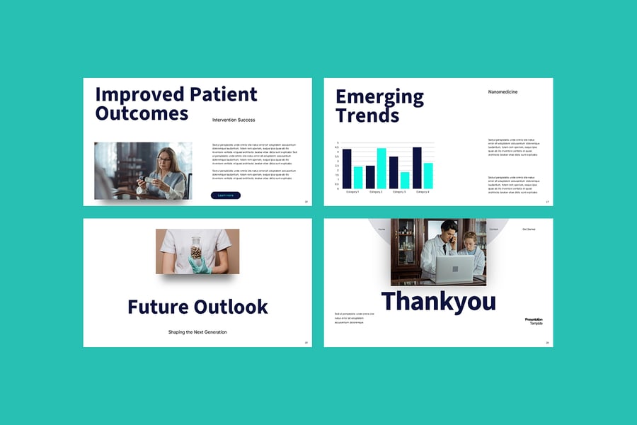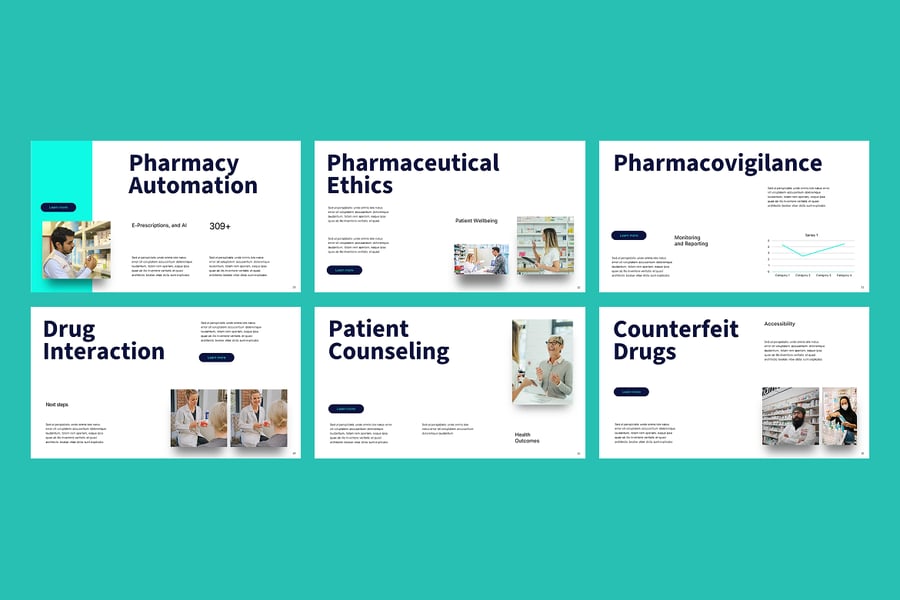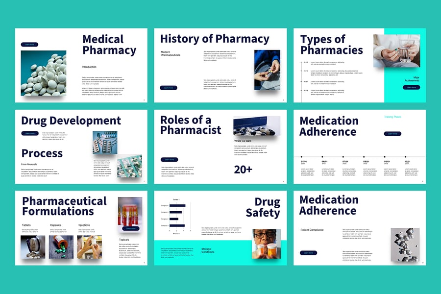 此演示模板适用于药房业务提案、医疗产品发布、处方药报告、生物技术公司概述、医疗保健营销策略、药店品牌演示。