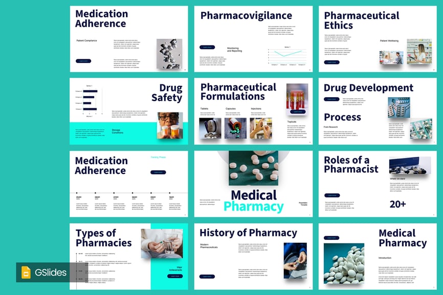**干净专业的医药药房 Google 幻灯片 – 非常适合诊所、制药公司宣传和药物报告**