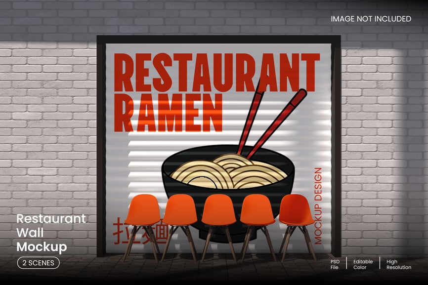 使用这款**餐厅墙面模型**,在优雅的用餐环境中展示您的餐厅品牌、菜单板或壁画。非常适合室内设计师、品牌代理机构或咖啡馆老板在现实场景中展示视觉效果。