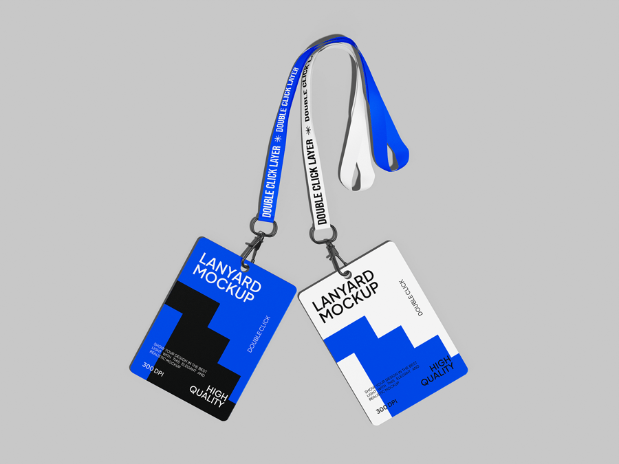 **扩展设计用途**:_挂绳品牌模型、身份证夹设计、会议徽章带、企业形象配件、员工证件视觉、促销赠品布局、姓名标签展示、可调节徽章带、贸易展挂绳预览、颈带设计_