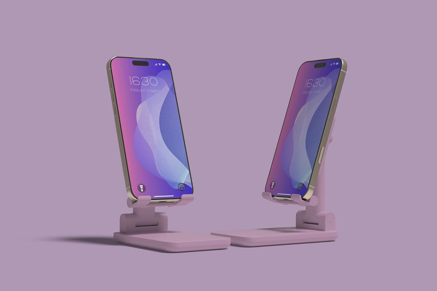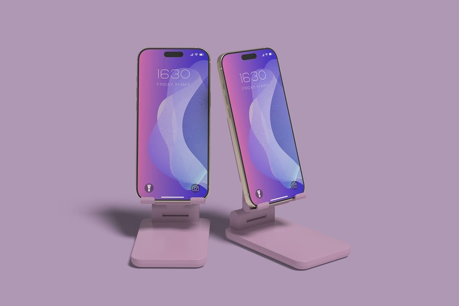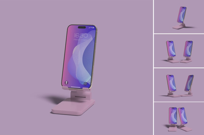 用时尚的方式展示您的手机支架模型!只需几秒钟,即可为您的客户创建逼真的手机支架模型。这些 PSD 文件使用智能对象功能,因此您可以轻松快速地替换模型内容。非常简单!您只需双击智能对象,粘贴您的作品,保存,即可完成。