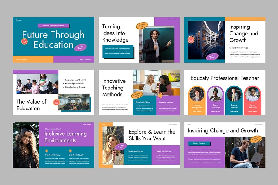 **教育演示** 专业的多用途演示模板。内置 16:9 (高清) 屏幕。简洁、现代、易于编辑。非常适合您的企业、学校、学院、教育和推广。