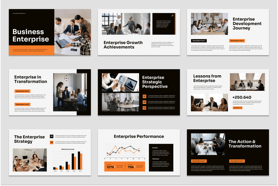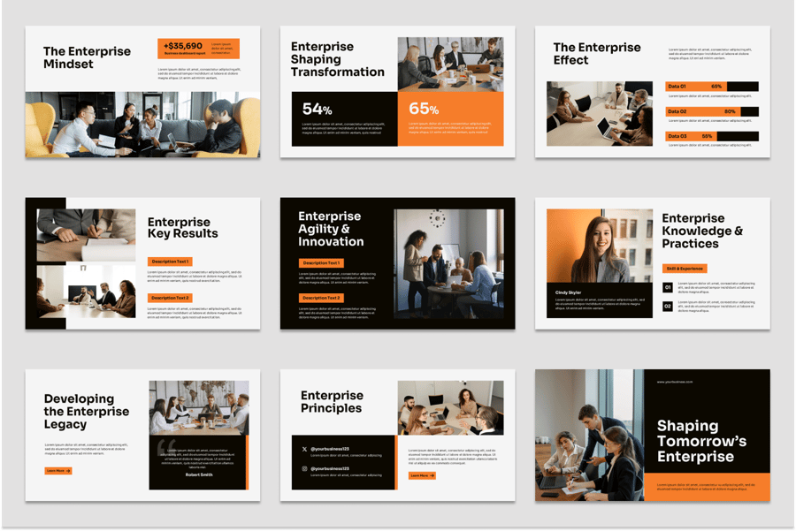 **Perfect for** Enterprise Strategy Presentation, Corporate Business Plan, Organizational Development Deck, Financial Performance Overview, Stakeholder Engagement Deck, Business Growth Roadmap, Investor Relations Presentation, Internal Team Alignment, Annual Enterprise Report, Project Portfolio Showcase, Change Management Communication, Expansion & Scaling Strategy, Partnership Proposal, Technology Integration Plan, Risk Management Presentation, International Enterprise Development, Governance & Compliance Deck, Operations Review, Enterprise Innovation Pitch, Global Market Expansion Strategy