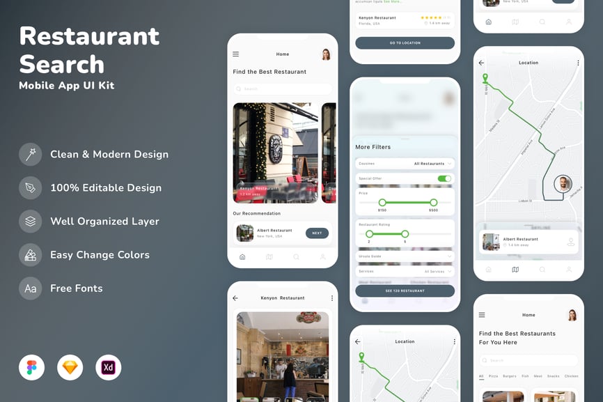 餐厅搜索移动应用程序 UI 套件