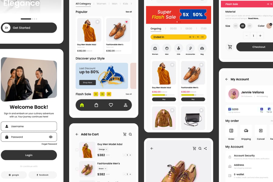 Zamara 是一款设计大胆、充满活力的时尚移动应用,非常适合打造现代购物体验。它针对用户参与度进行了优化,注重生动的视觉效果和流畅的结账流程。简洁的布局和充满活力的配色方案使其适用于任何时尚前卫的品牌或在线商店。Zamara 令人惊叹的 UI/UX 设计定能让您的客户印象深刻,并提升您的项目。