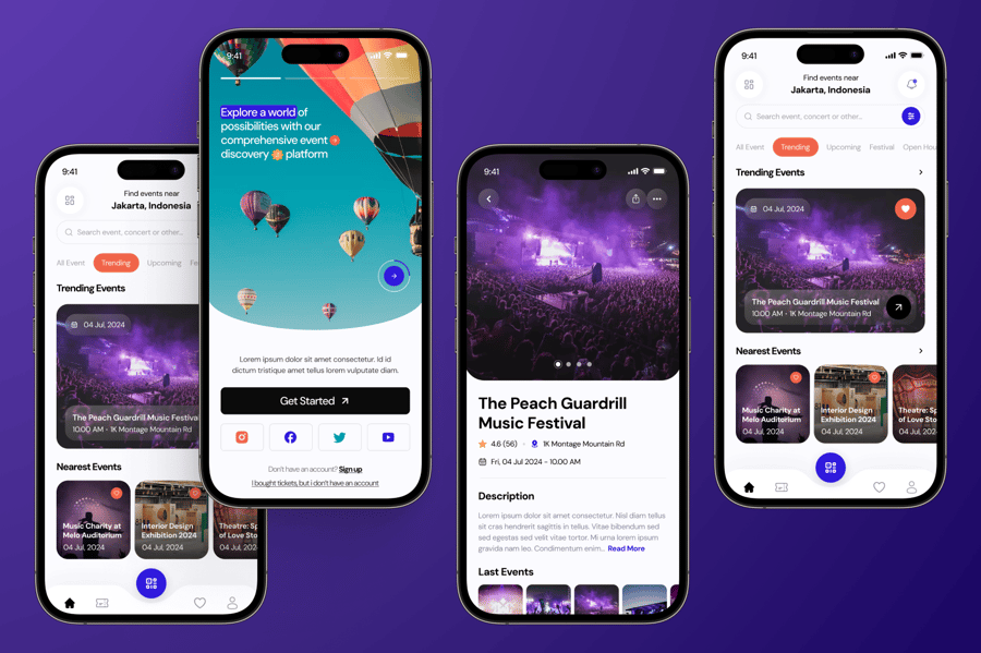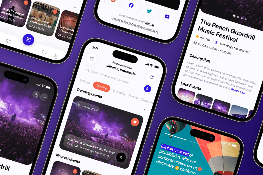这款移动 UI 套件旨在帮助您构建具有流畅用户体验的现代化活动和票务应用程序。它提供了一个简洁灵活的系统,用于展示日程安排、预订门票和管理参会者,同时保持界面的直观性。