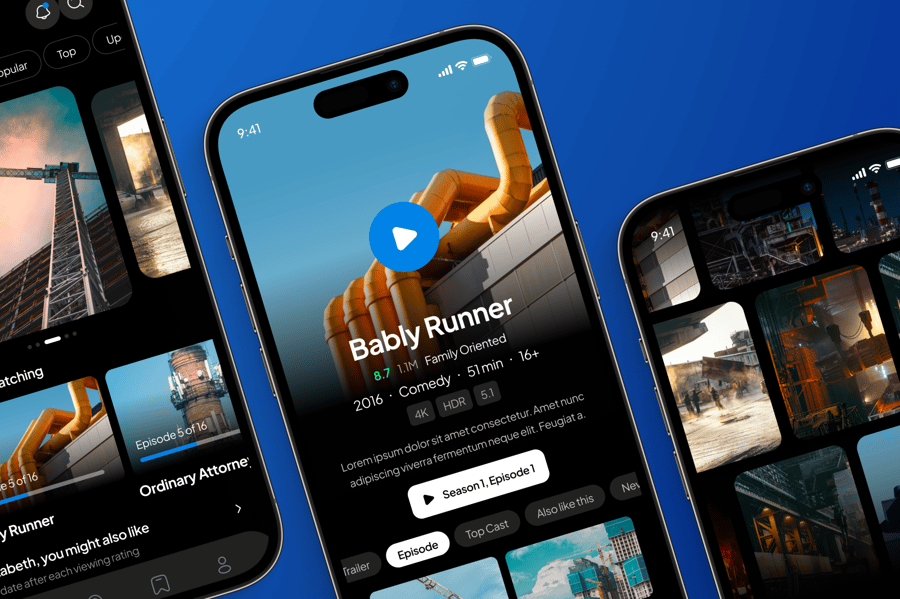 这款 UI 套件专为影视流媒体应用设计,旨在提供流畅的浏览、观看和发现数字内容的体验。它拥有丰富的布局,能够突出显示电影海报、剧集列表和个性化推荐,轻松适配影院、网络剧集或独立电影平台。其响应迅速且用户友好的结构,确保创作者能够快速构建出具有现代感且引人入胜的专业流媒体服务。