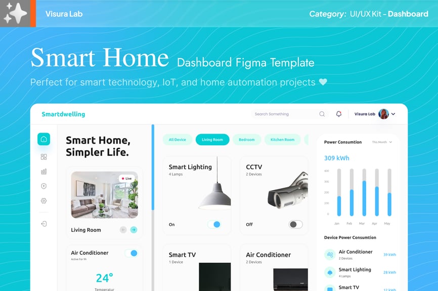 Figma 智能家居仪表板模板是一款时尚现代的 UI 套件,旨在轻松管理智能家居设备。该模板拥有简洁的布局、可自定义的组件和可扩展的样式,帮助设计师和开发者快速构建专业的仪表板。它非常适合智能技术、物联网和家庭自动化项目,在每个屏幕上都提供灵活性和易用性。通过井然有序的图层、响应式元素和精美的美感,增强您的工作流程,适用于演示或开发。
