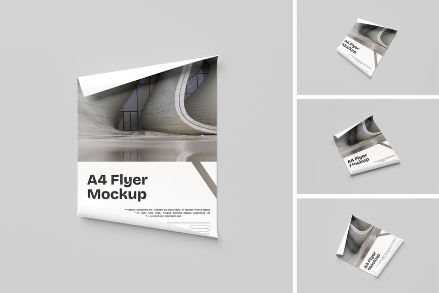 **逼真的 A4 传单模型**