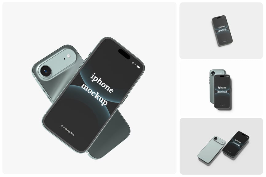 在这些精美的库存模型上展示您的 iPhone 17 Air 模型设计。此模型包含 4 个项目,并带有分层良好的 PSD 文件。此外,此模型还使用了智能对象功能,这意味着您只需几秒钟即可轻松快速地将现有设计更改为您自己的设计。