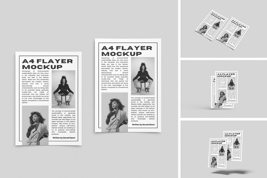 在这些风格华丽的库存模型上展示您的 A4 Flayer 模型设计。此模型包含 4 个项目,并带有分层精美的 PSD 文件。此外,此模型还使用了智能对象功能,这意味着您只需几秒钟即可轻松快速地将现有设计更改为您自己的设计。