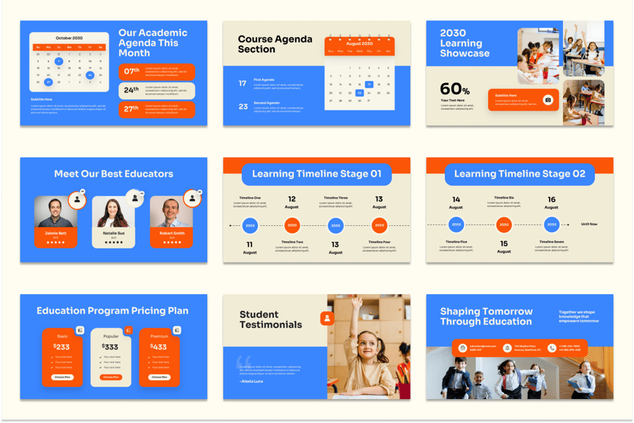 这款专为教师、学校和家长设计的儿童教育平台,让学习变得精彩纷呈、引人入胜。它拥有俏皮的布局、鲜艳的色彩和儿童友好的插图,有助于以有趣且互动的方式呈现课程、活动和教育内容。非常适合早期学习、课堂演示和创意教学方法。