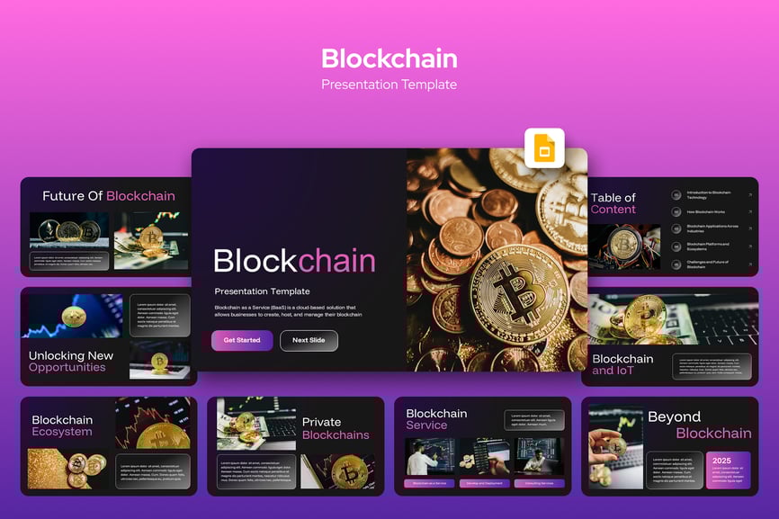 区块链 Google 幻灯片模板旨在帮助专业人士清晰地展示区块链概念、数字货币和去中心化金融解决方案。它包含区块链架构、加密货币趋势、代币经济学、智能合约、安全模型和市场分析等幻灯片。凭借现代化的布局和易于定制的特性,它将复杂的区块链概念简化为清晰、引人入胜的视觉效果。