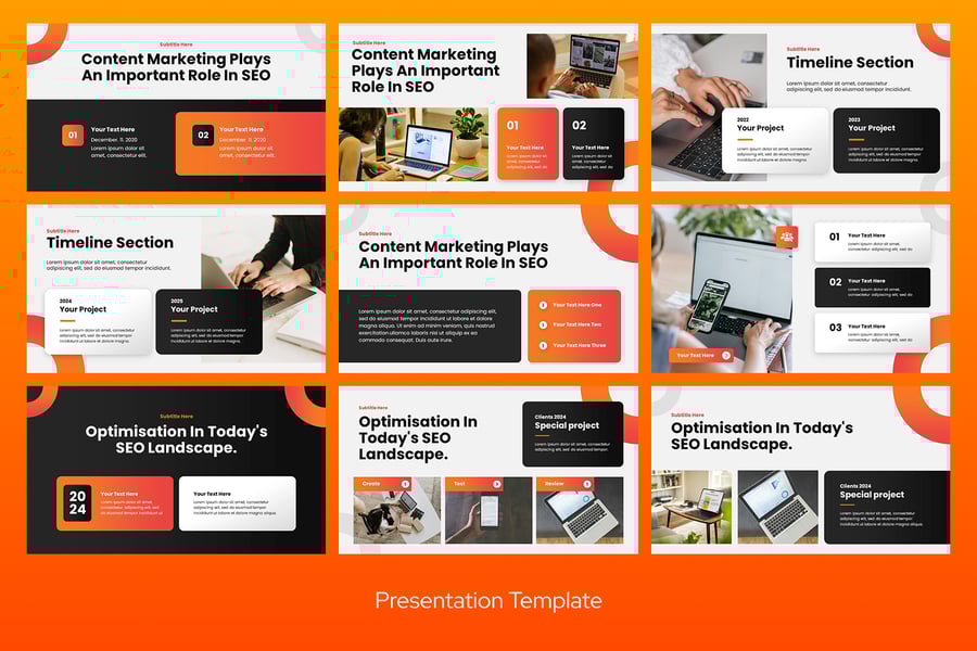 此模板非常适合想要展示成果和策略的数字营销人员、SEO 专家、代理机构和企业主。您可以用它来制作月度 SEO 报告、客户演示、营销活动回顾、营销绩效更新以及增长战略会议,从而改进决策并突出机会。
