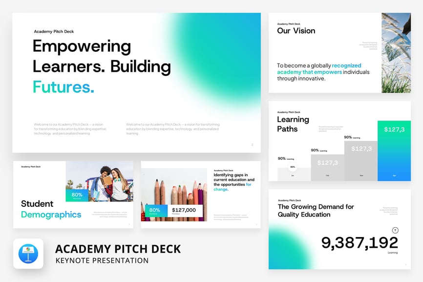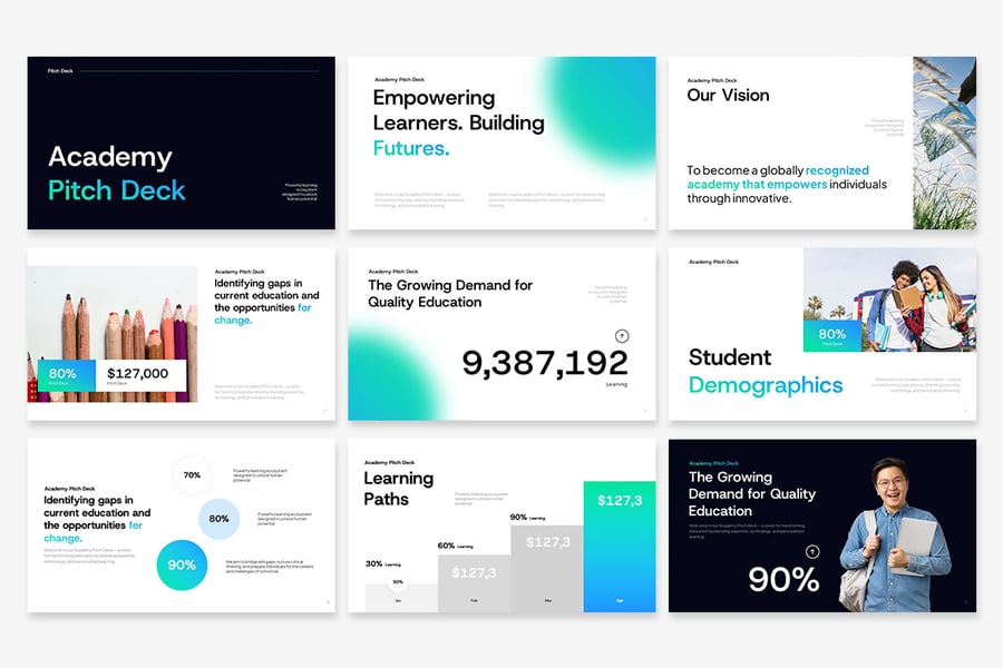 学院教育演示模板具有简约而优雅的设计、易于定制的元素和高质量的图形,是希望有效传达知识并留下持久印象的教师、教授、培训师、电子学习讲师和教育专业人士的完美选择。