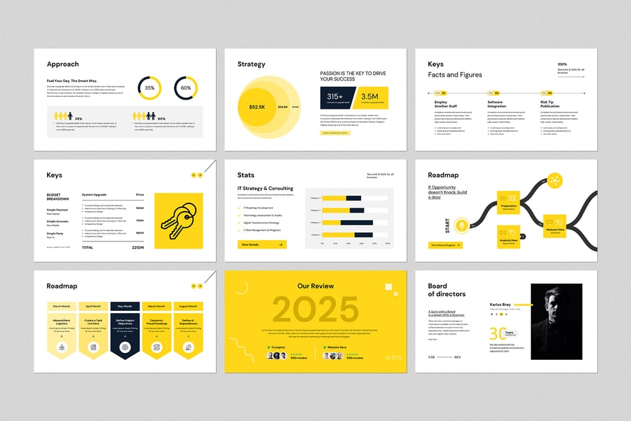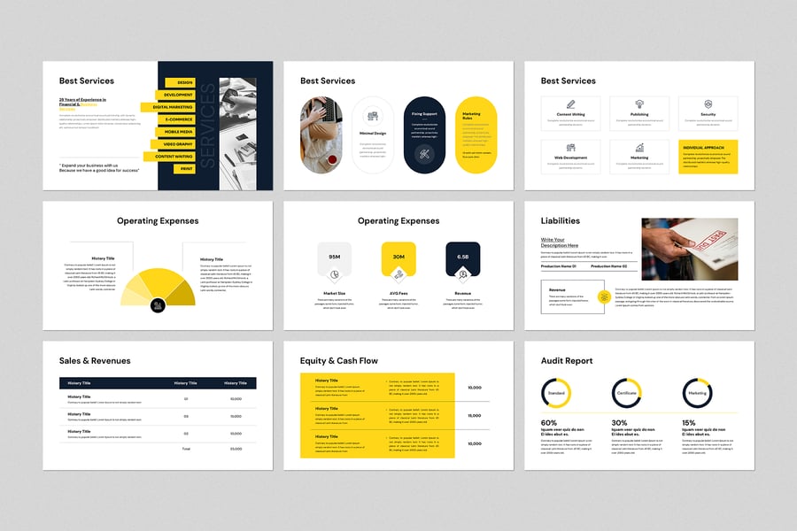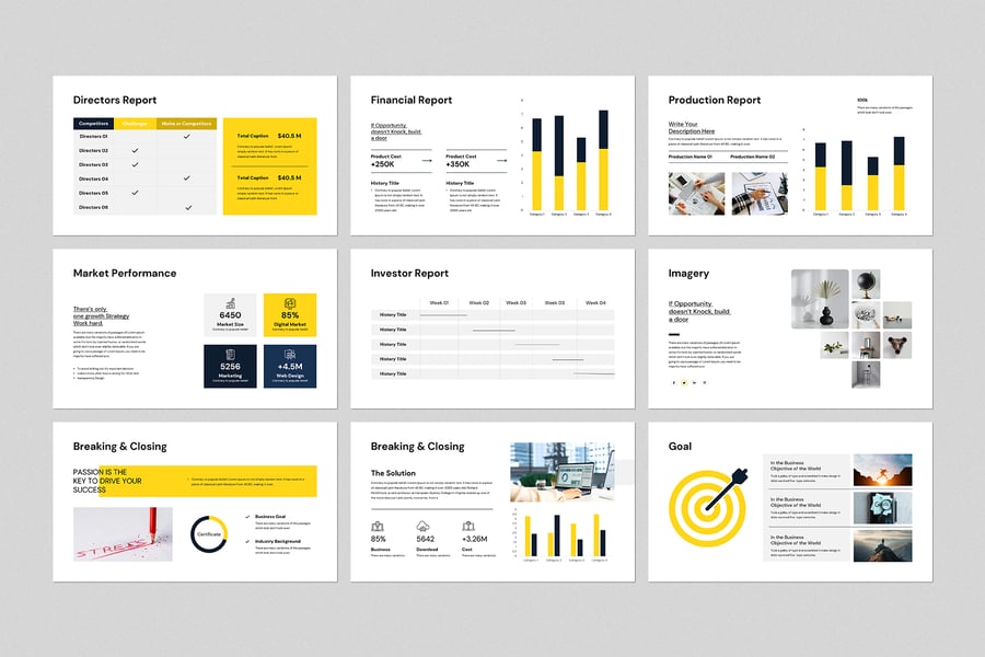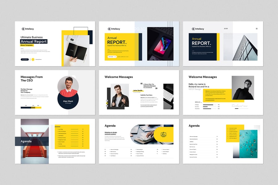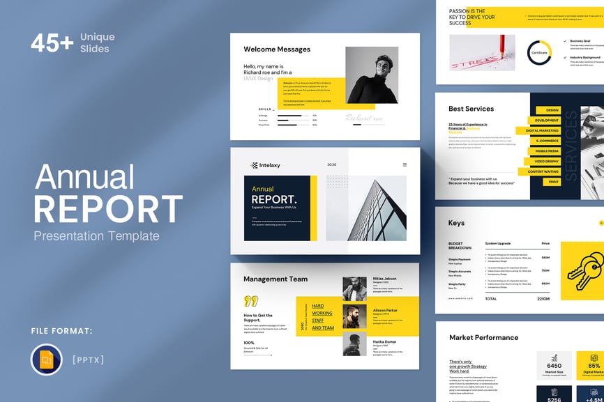 年度报告 – 演示文稿风格模板,满足您独特、专业、简洁、创意十足的演示文稿需求。所有幻灯片均采用精美的风格设计。所有元素均可轻松编辑,并可轻松更改颜色以匹配您的个人或公司品牌。