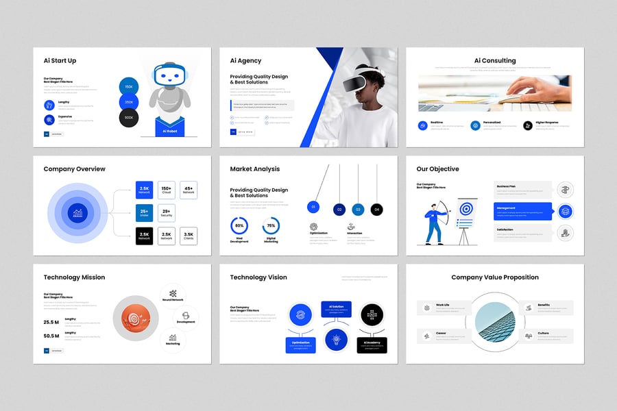 技术 – 演示风格模板,满足您独特、专业、简洁、创意十足的演示需求。所有幻灯片均采用精美的风格设计。所有元素均可轻松编辑,您可以轻松更改颜色,以匹配您的个人或公司品牌。