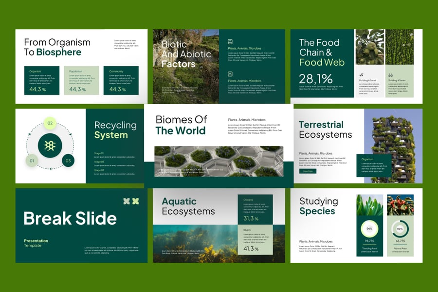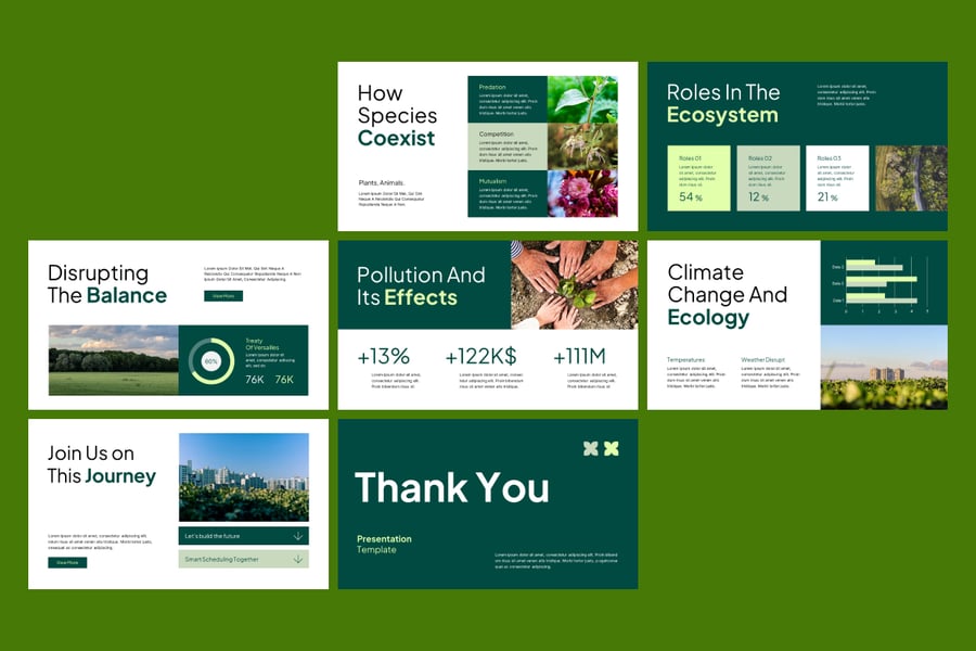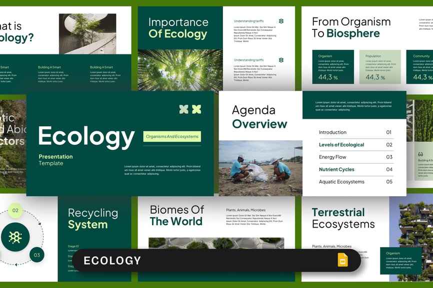 使用绿色生态 Google 幻灯片演示模板进行具有影响力的演示 – 这是一个用于建立意识、促进可持续性和支持环境倡议的专业工具。