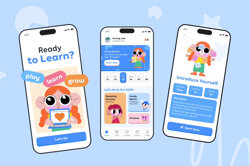 模型图片和照片仅供展示,不包含在我的商品中。 文件包含: 英语学习应用程序 Envato.fig 英语学习应用程序字体
