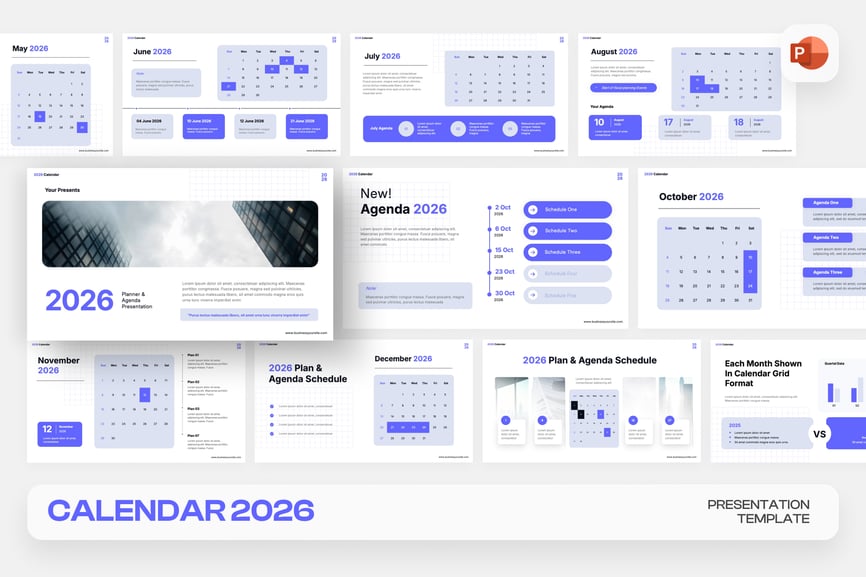 是一种现代风格的演示模板,非常适合日历、报告、计划器、商业演示、样本幻灯片、项目推介以及更多用途。