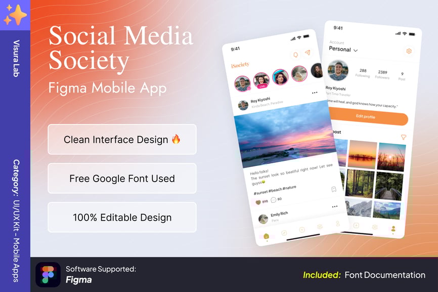 社交媒体社团 Figma 移动应用模板是一款时尚现代的 UI 套件,旨在帮助您轻松构建引人入胜的社交网络和社区应用。该模板具有简洁的布局、直观的导航和完全可自定义的组件,非常适合创建用于连接用户、共享内容和促进互动的移动平台。