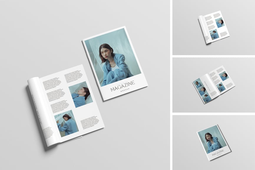 在这些风格华丽的库存模型上展示你的杂志模型设计。此模型包含 4 个项目,并带有分层精美的 PSD 文件。此外,此模型还使用了智能对象功能,这意味着你只需几秒钟即可轻松快速地将现有设计更改为你自己的设计。